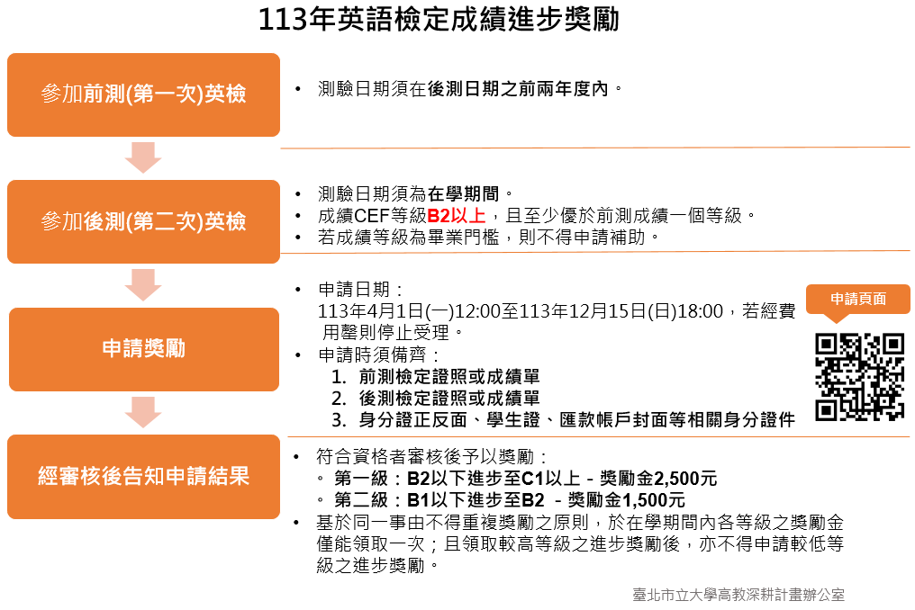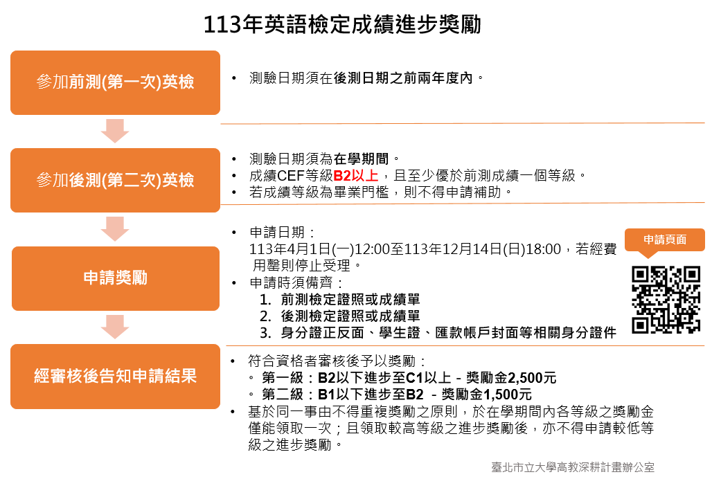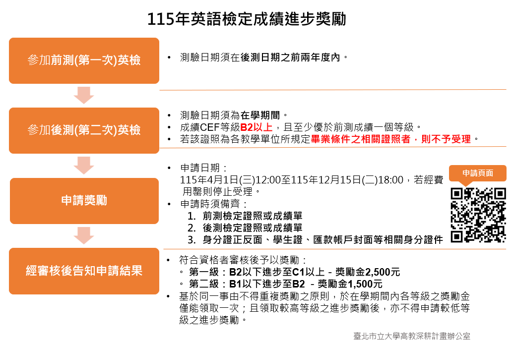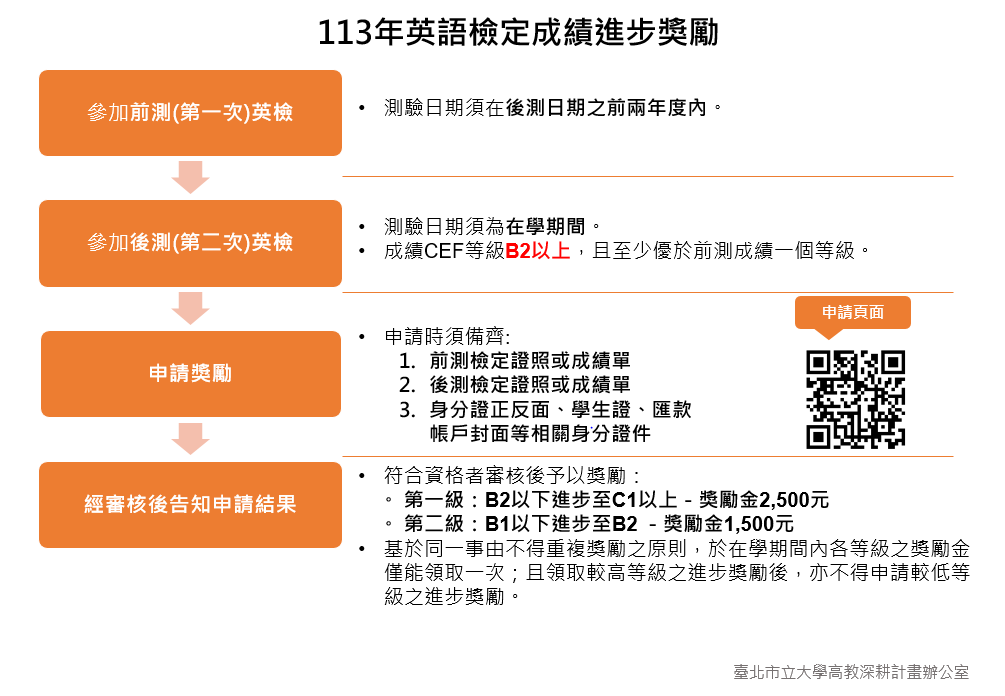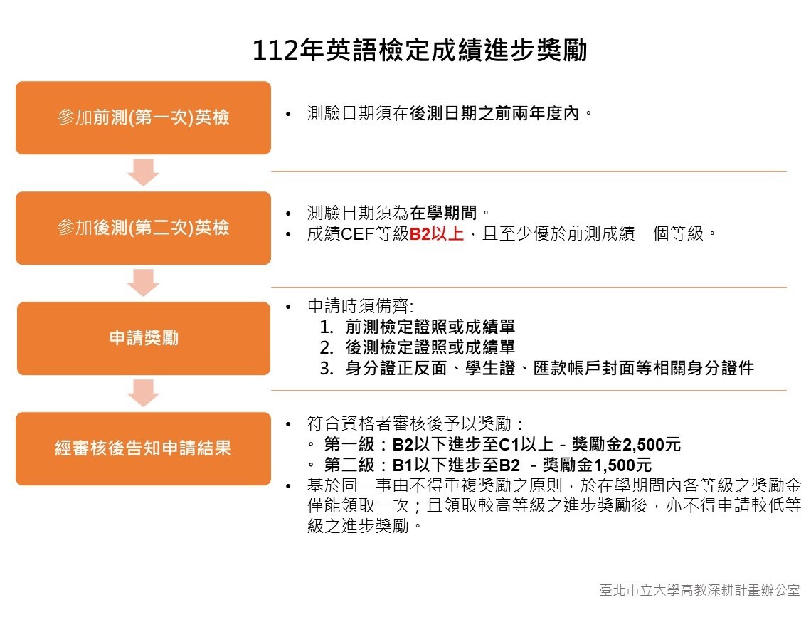 第一級:B2以下進步至C1以上,獎勵金新臺幣2,500元。