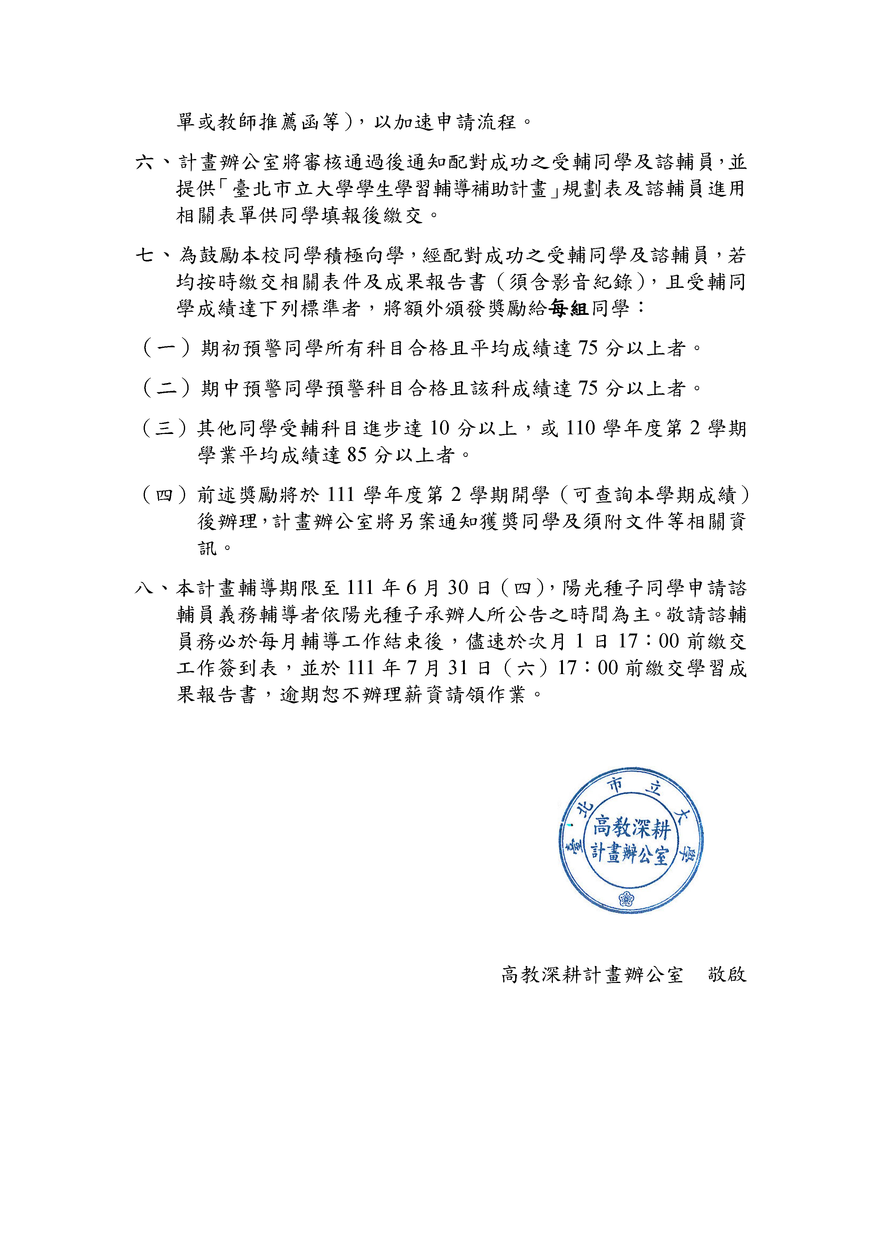 若有申請相關問題,煩請與本計畫辦公室聯絡。